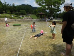 広大な公園で水遊びもできる、遊具もある、芝生広場もあるのと、なんてったておもいっきり走り回れるという子連れ家族には嬉しい公園でした♪